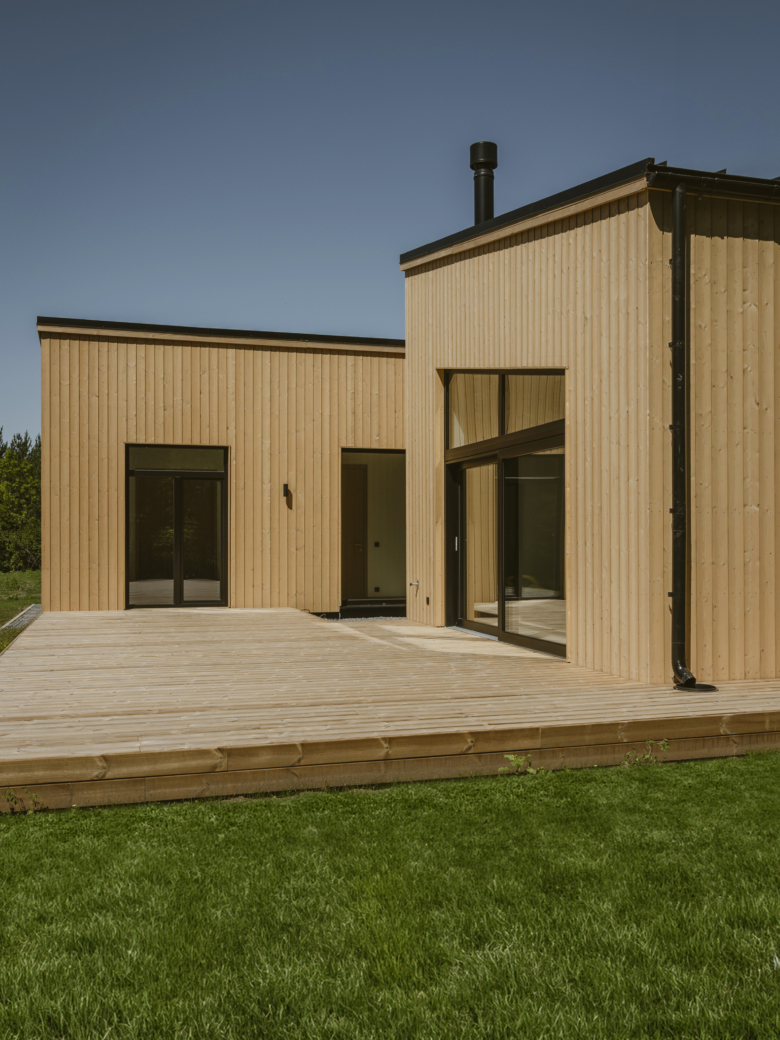 Majatüüp V2 ühendab puitfassaadi sooja ja elava tekstuuri selge vormikeele ning tasakaalustatud lihtsusega. Looduslikud materjalid ei ole siin pelgalt viimistlus, vaid osa arhitektuuri mõttest – need annavad hoonele ajas kestva iseloomu ja loovad sideme ümbritseva keskkonnaga.