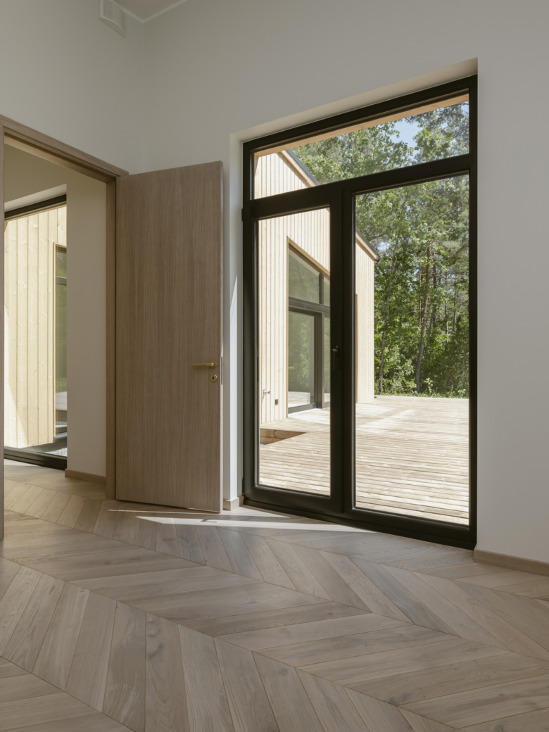 Hoone on planeeritud kahte eraldiseisvasse tiiba, mis toetavad mugavat ja loogilist igapäevaelu. Ühes tiivas paikneb magamistubade blokk, tagades privaatsuse ja rahu, teises tiivas asuvad elutuba, köök ning saun, moodustades seltskondliku ja avara ühise ala.